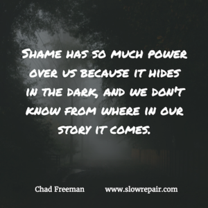 By facing our shame, we don’t have to be its prisoner or messenger. We can locate where shame hides and drag it into the light of community and restoration. The light loosens shames grip and power.