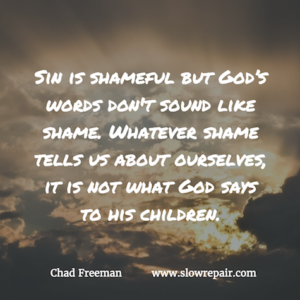 This is not the whole story of shame, but it is a great place to start experiencing the acceptance we already own. Shame is not the end of our story. Sin is shameful but God’s words don’t sound like shame. Whatever shame tells us about ourselves, it is not what God says to his children.